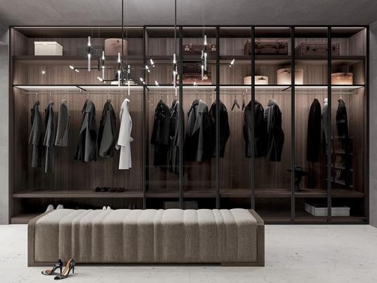 Это деревянный шкаф со стеклянной дверью Встроенная светодиодная лента — одновременно стильная и элегантная. Стеклянная дверца позволяет быстро и удобно находить нужную одежду.